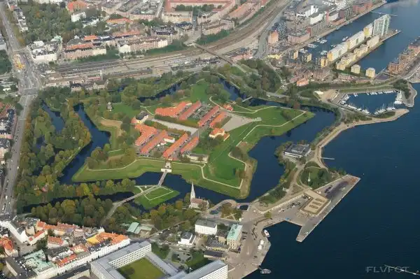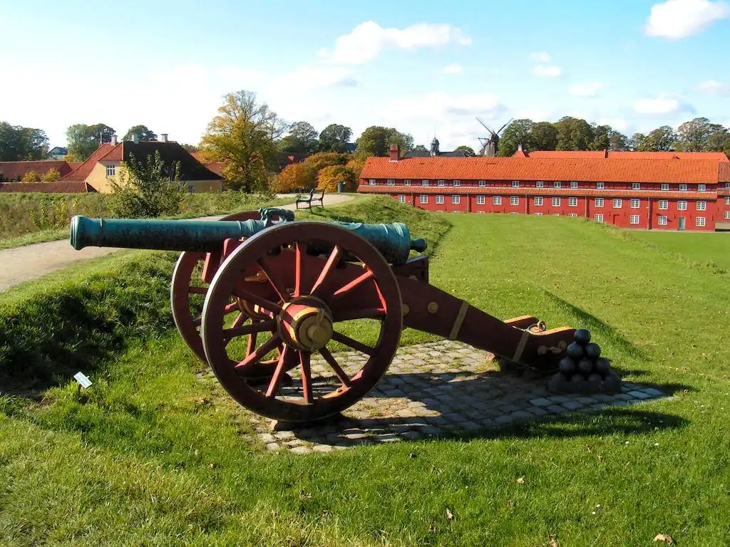 Это сооружение в форме пятиугольной звезды, одно из самых мощных и укрепленных в Северной Европе, было построено в XVII веке, но до сих пор сохраняет статус военного объекта и находится в ведении Министерства обороны Дании. Каменных стен и башен здесь нет, зато остались высокие насыпи, а на них стоят старинные пушки.