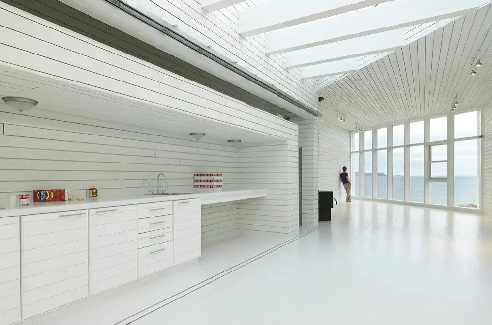 Архитектура здания должна реагировать на смену времен года на острове. Поэтому концепция пространства заключалась в создании линейной формы, сформированной из трех разных частей. Открытая терраса под крышей используется весной. Центральная часть дома остается открытой и используется в жаркие летние дни.