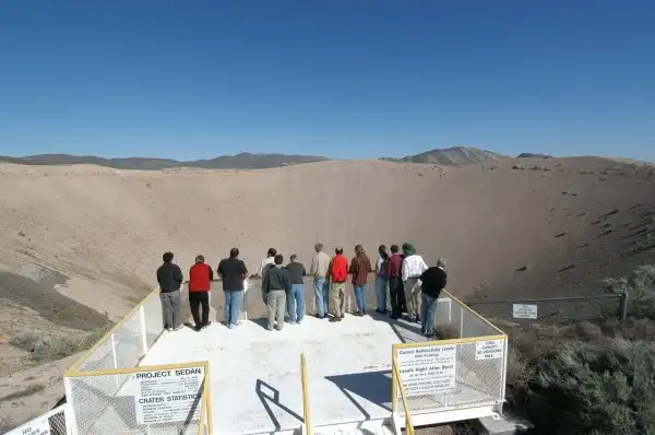 На испытательной площадке в Неваде было проведено около 100 атмосферных ядерных взрывов. Сегодня это место открыто для туристов. Автобусные туры, организованные министерством энергетики США, доставляют посетителей на место служившим главным ядерным полигоном в период с 1960 по 1962 год. Одна из местных достопримечательностей – кратер Седан. Он возник 6 июля 1962 года после детонации ядерного устройства сдвинувшего с места 12 000 000 тонн земли и камней.