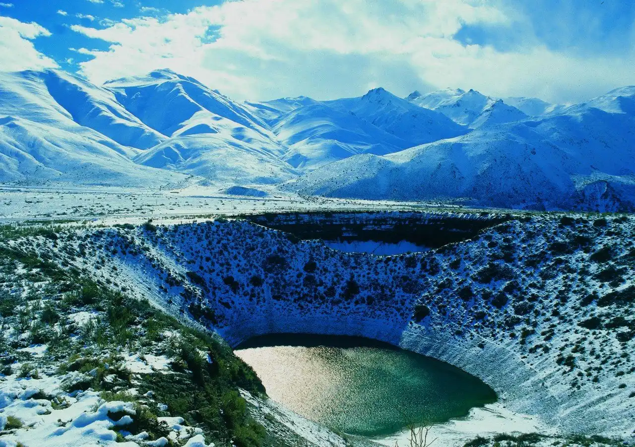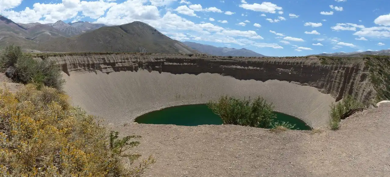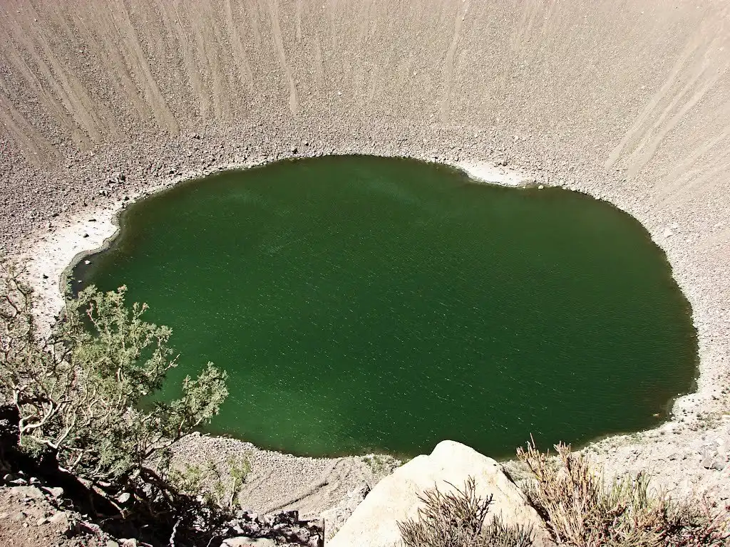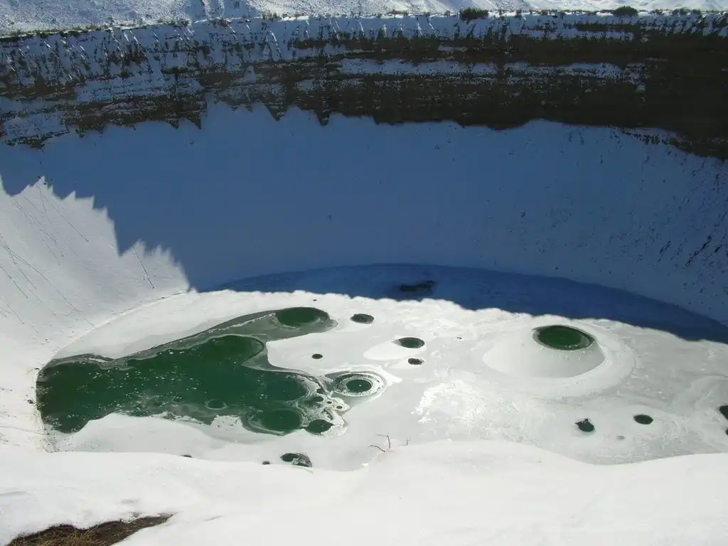 Склоны тут менее круты и покрыты редкой растительностью, а в основании расположилось небольшое, голубое озеро. Уровень воды и размер озера очень часто изменяются.