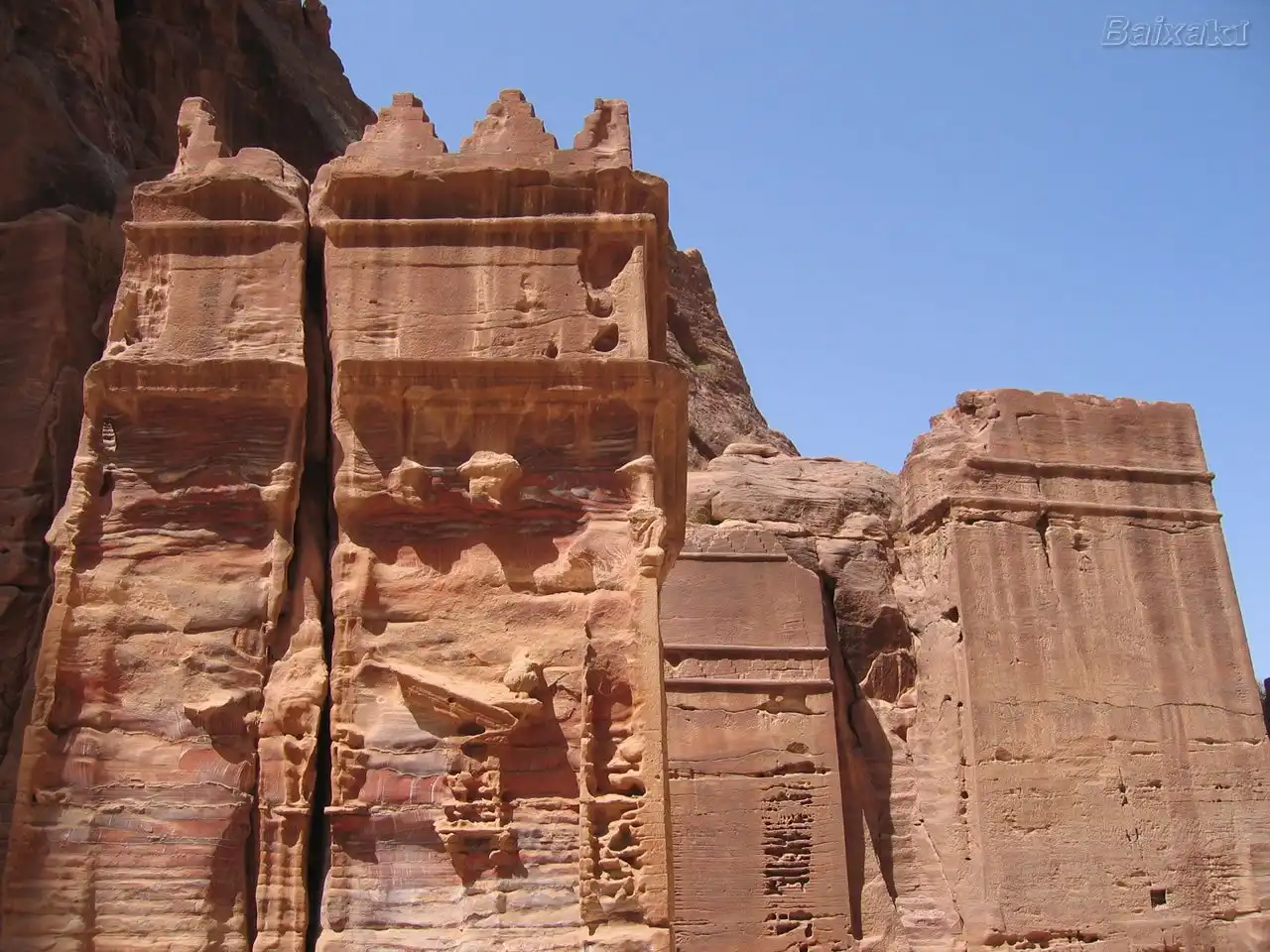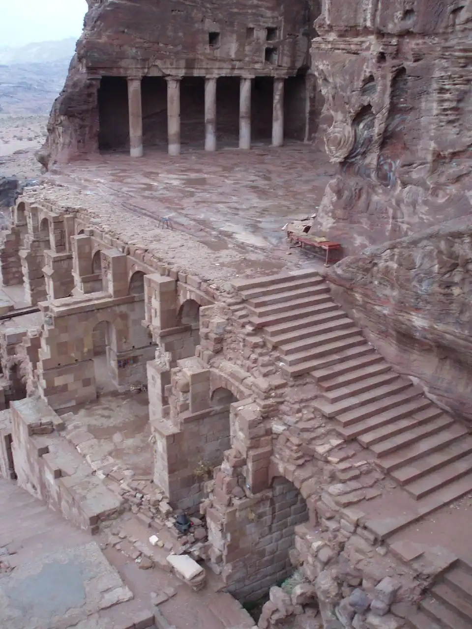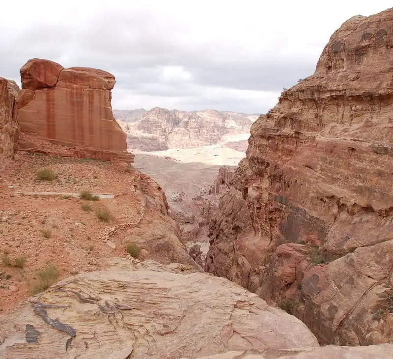 Этот древний чудо-город простирается вдоль извилистой долины, образовавшейся среди скал, на месте, бывшем в глубокой древности руслом реки. Вытесанные в скалах ступеньки ведут к неисчислимому количеству сооружений — монументов, некрополей, водохранилищ, алтарей. До наших дней сохранилось более восьмисот памятников Петры.
