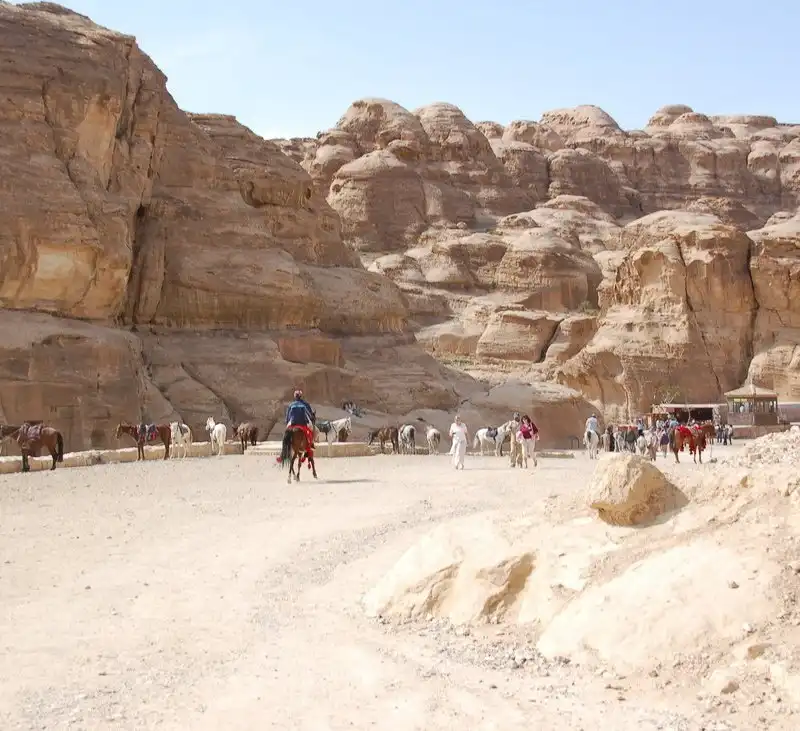 Петра до сих пор является пристанищем бедуинов. На своих лошадях и верблюдах они сопровождают посетителей в путешествии по древнему городу.