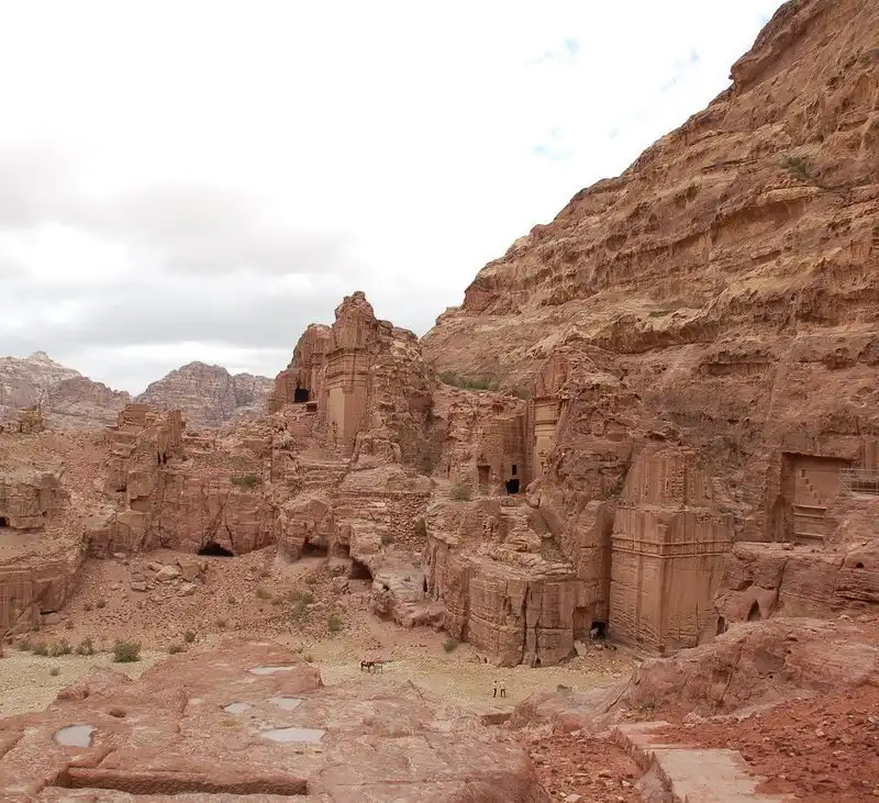 Раньше думали, что Петра была когда-то городом, но теперь известно, что это был скорее некрополь, вырубленный в скалах на высоте 900 метров над уровнем моря. Некоторые гробницы представляют собой классические образцы искусной детальной работы, другие отличаются типичными набатейскими декоративными.