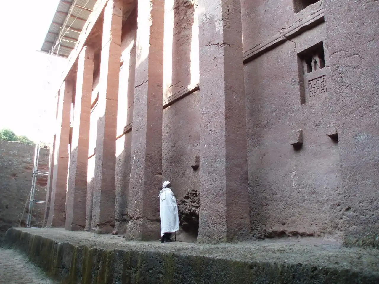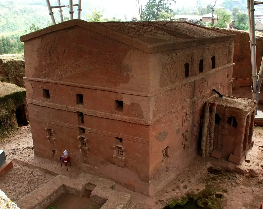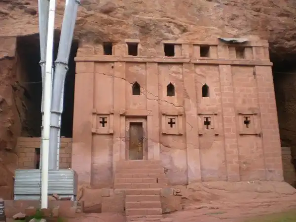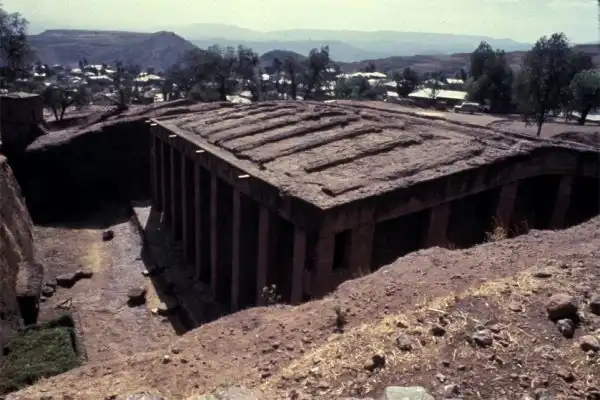 Храмовый комплекс Лалибелы — это одиннадцать искусно вырубленных в скале церквей. Украшенная колоннами, самая большая из них — это Бете Медане Алем, или Храм Спасителя Мира. Бета Медане Алем — самый большой в мире храм, высеченный целиком из единого скального массива. И вся его наружная часть и все внутренние помещения, колонны, залы и потолки — это то, что осталось, когда от гигантской глыбы мастера отсекли всё лишнее. Исключение составляют несколько колонн, состоящие из отдельных блоков и делающие его похожим на классические греческие храмы.