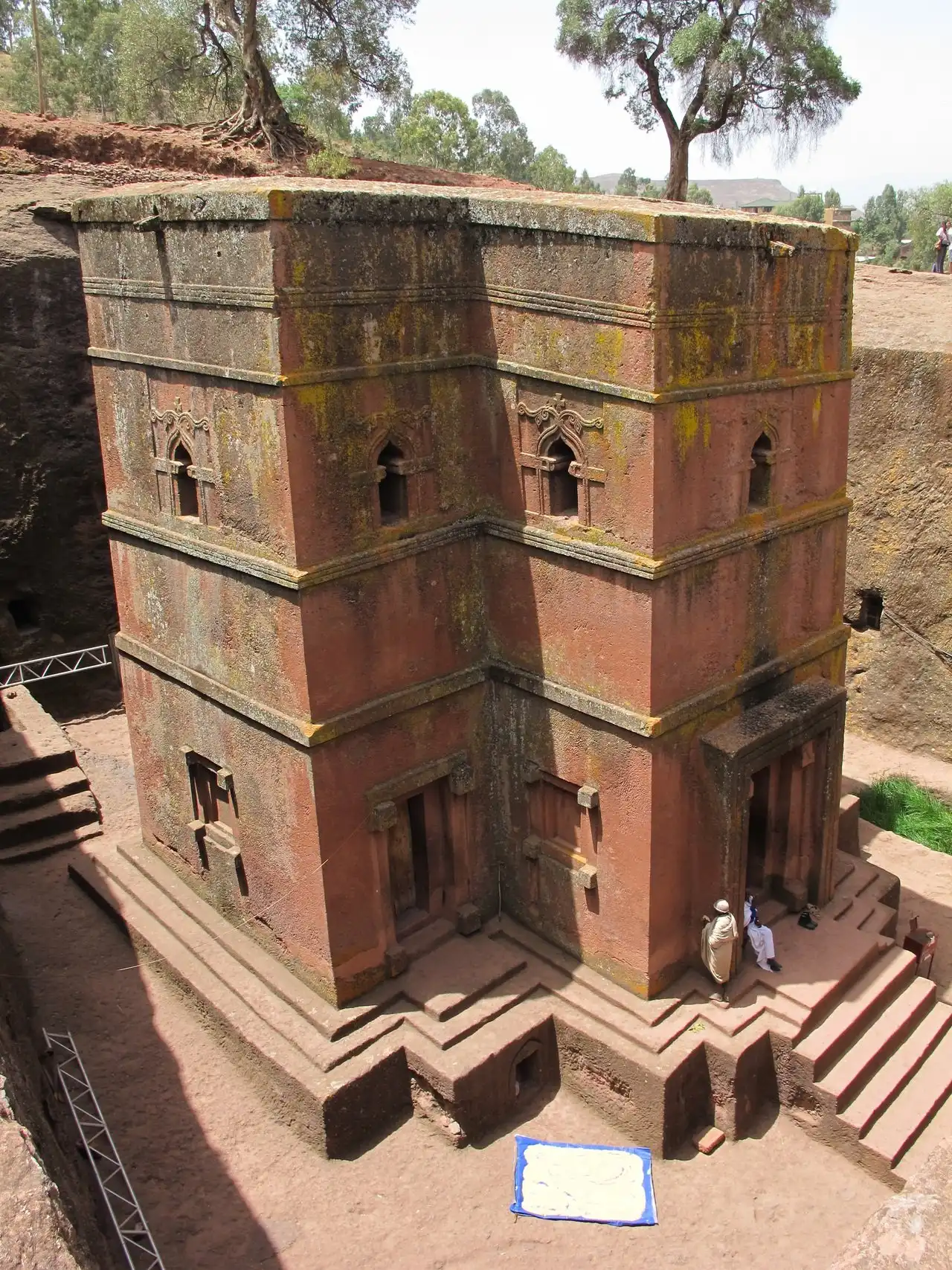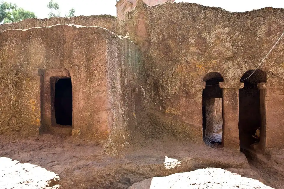 Церковь стоит в большом дворе, который точно с такими же невероятными усилиями был вырублен в скале. Позднее в северной стене внутреннего двора была высечена церковь Креста (Бетэ Мескель). На противоположной стороне двора находится церковь Богородицы, посвященная мукам Пресвятой Девы. Через тоннель-лабиринт можно пройти к другим скальным храмам, связанным с двором. Церковь Святого Георгия, покровителя эфиопов и англичан, вырублена в виде крестообразной в плане башни с равными поперечинами креста. Она стоит в глубокой яме, и к ней можно добраться только через тоннель.