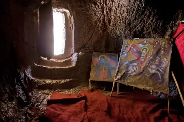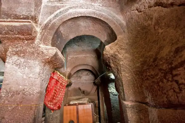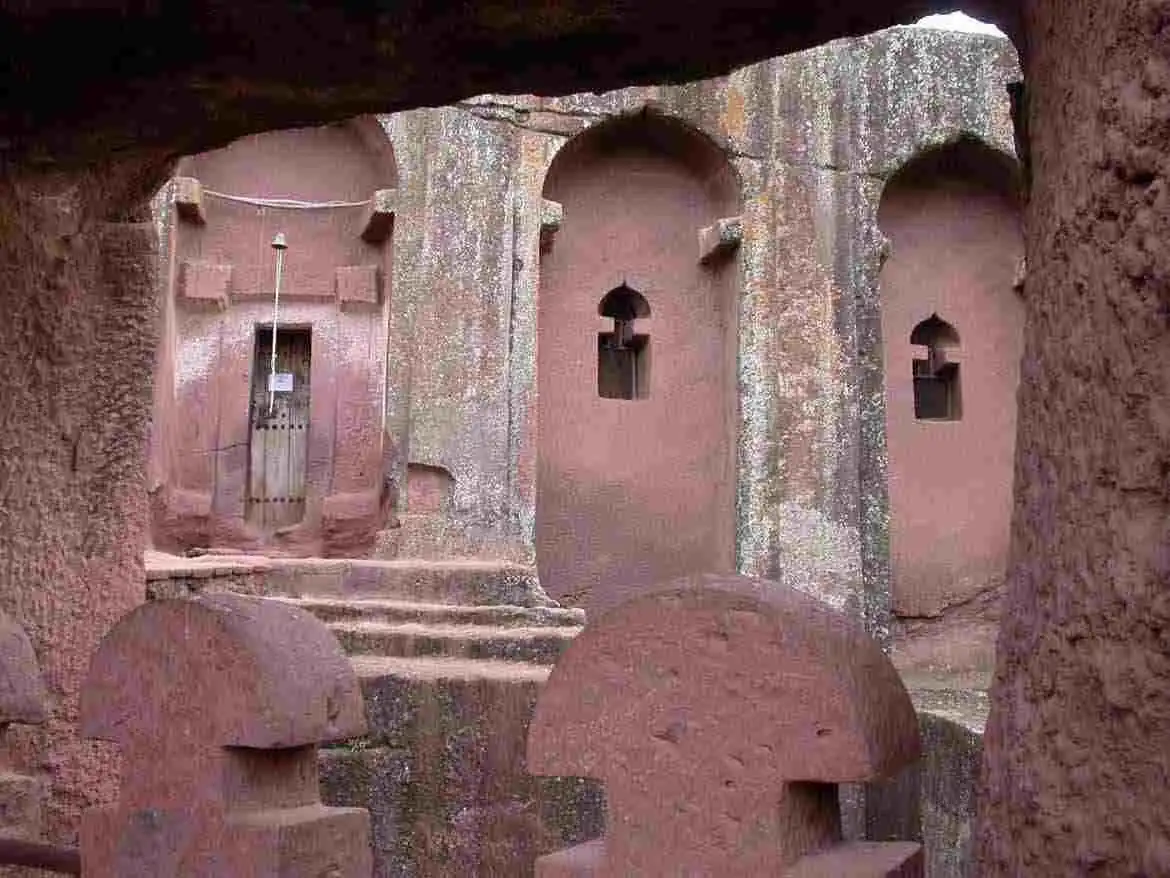Внутри храмов-монолитов царит таинственная полутьма. Колонны, потолок, алтарь — здесь все необычно, все завораживает взгляд. У каждого из элементов храмового декора есть своё символическое значение. Говорят, будто бы именно здесь, в тайнике, хранился легендарный большой золотой крест короля Лалибелы. В 2009 году ЮНЕСКО, чтобы сохранить уникальные фрески древних храмов, предложила защитить строения особыми сводами. Так удивительные храмы-монолиты будут еще менее заметны, зато они станут куда более защищенными от вредного воздействия природных факторов. Но можно быть уверенным — поток паломников и туристов из самых разных стран мира в Лалибелу никогда не иссякнет. Ведь ничего подобного нет ни в одном другом уголке нашей прекрасной планеты!