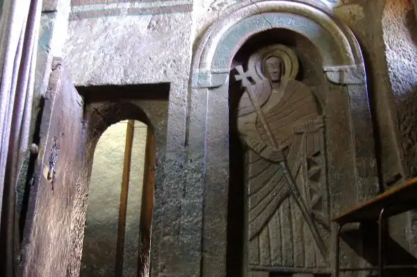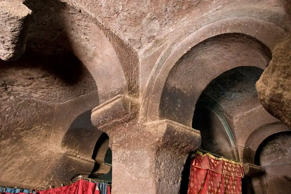 По узким тоннелям, прорубленным в породе, от одной церкви к другой можно перейти, не поднимаясь на поверхность. Весь комплекс «спрятавшихся»храмов-монолитов трудно заметить даже с малого расстояния. Достаточно было не подпускать чужаков слишком близко — и святыни не подвергались лишней угрозе. Храмы нередко становились надежным убежищем — система подземных ходов была очень разветвленной. Служители говорят, что сейчас многие из них замурованы или закрыты досками и коврами, а о некоторых не знают даже самые любознательные и сведущие смотрители.