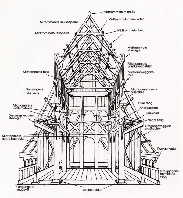 Кроме каркасной церкви XII века, в комплекс входят: