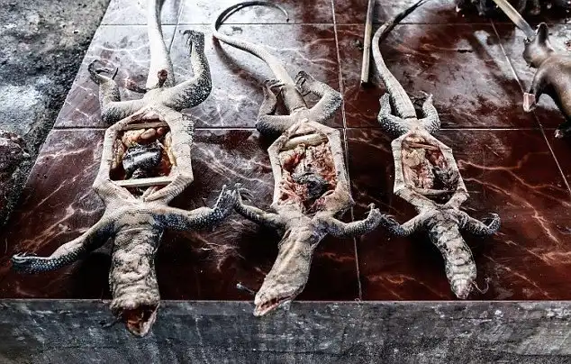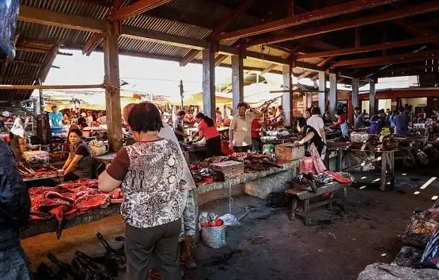 Продуктовый рынок в Ланговане, Индонезия — одно из самых посещаемых туристами мест. Здесь можно отведать такие диковинные закуски, как жареные летучие мыши, отбивные из змей, маринованные крысы и ножки дикого кабана. Пальчики оближешь!