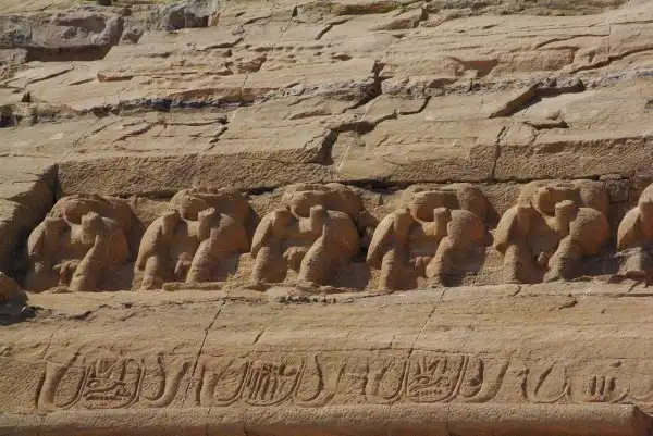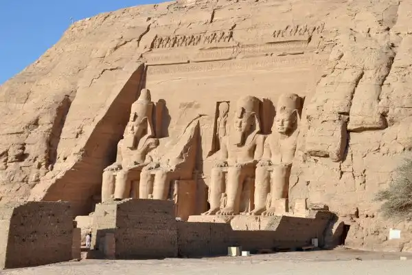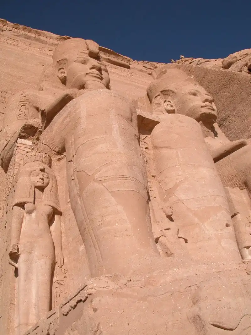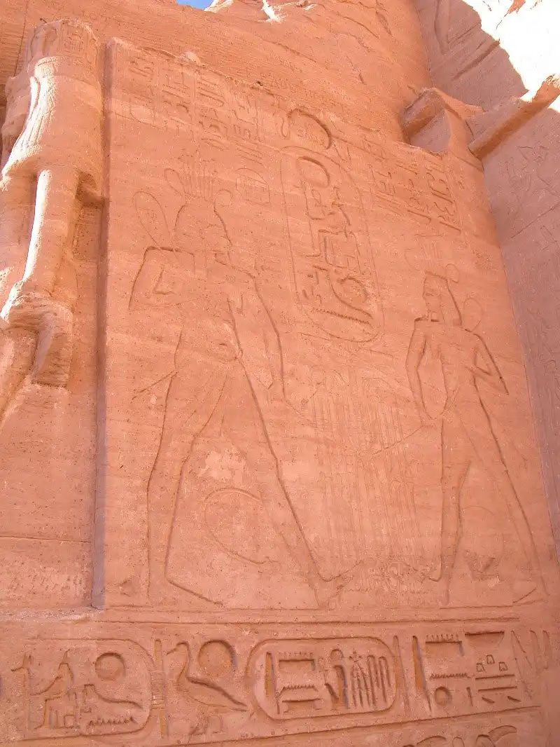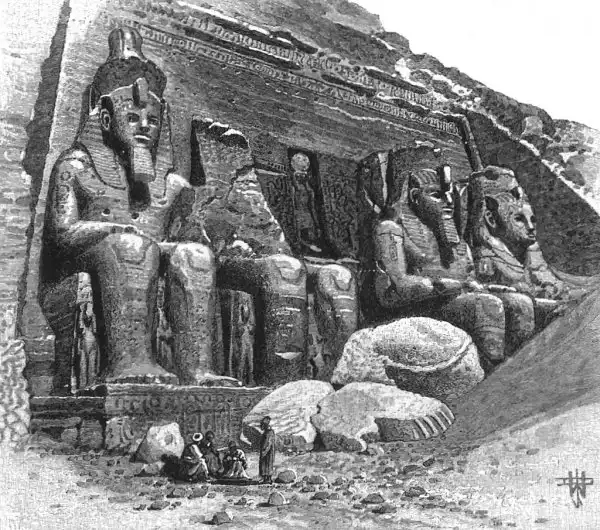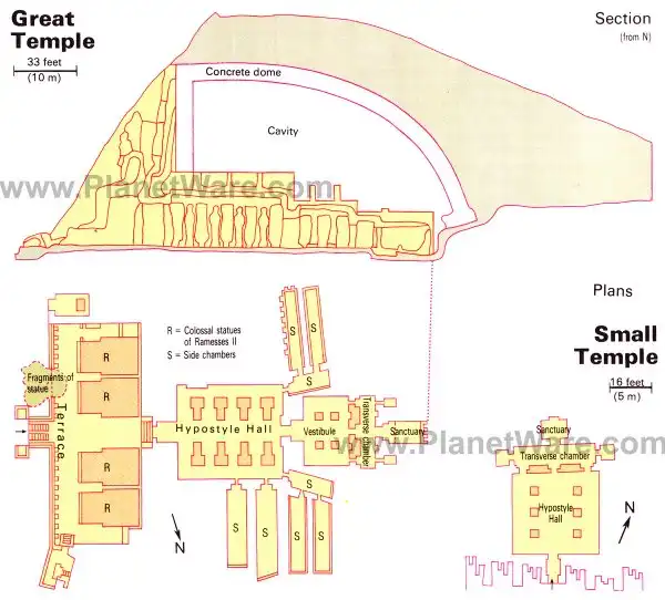 Ансамбль Абу Симбела образуют два сооружения: Большой храм, посвященный фараону Рамсесу II и трем богам: Амону, Ра-Хорахте и Птаху, и Малый храм, воздвигнутый в честь богини Хатор, в образе которой представлена жена Рамсеса II Нефертари-Меренмут.