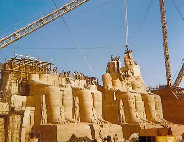 Во избежание затопления культурного наследия было решено разобрать Абу-Симбел по частям и собрать заново в новом месте. Для этого храмы были распилены на 1036 блоков, вес которых достигал от 5 до 20 тонн. Все они были пронумерованы и перевезены на новое место.