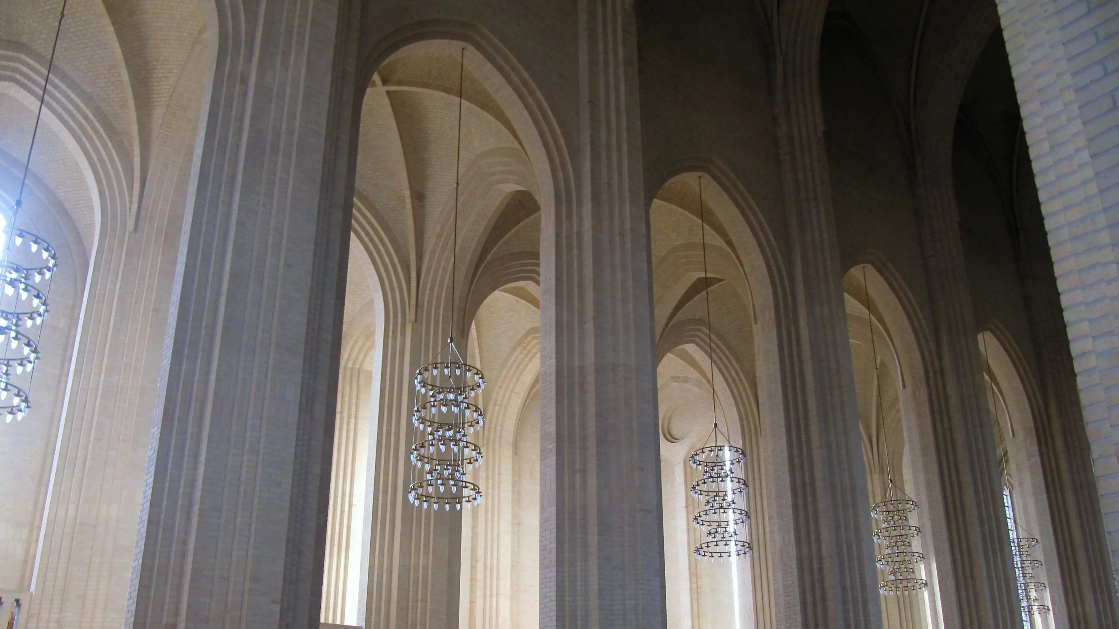 Колокольня церкви имеет 49-метровую высоту, а многочисленные вертикали фасада создают ощущения взлета в поднебесье. Для постройки храмового ансамбля было использовано около 6 миллионов желтых кирпичей – типичного для Дании строительного материала ручной выделки. Церковь Грундтвига открыта для посещений круглый год, а большой церковный орган – самый длинный в Скандинавии, – чьи линии так схожи с вертикалями фасада храма, постоянно участвует в проведении концертов и музыкальных фестивалей.