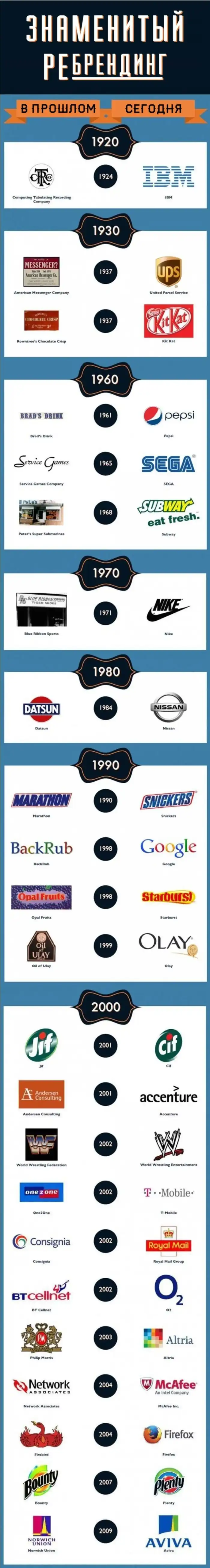 Довольно интересный инфографик, демонстрирующий нам ребрендинг известных на весь мир компаний.