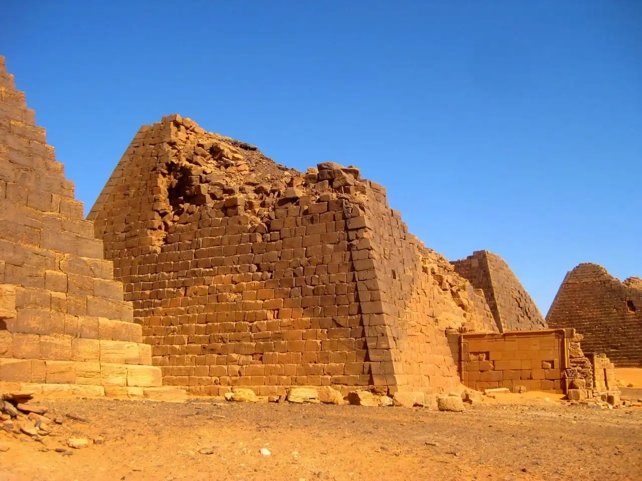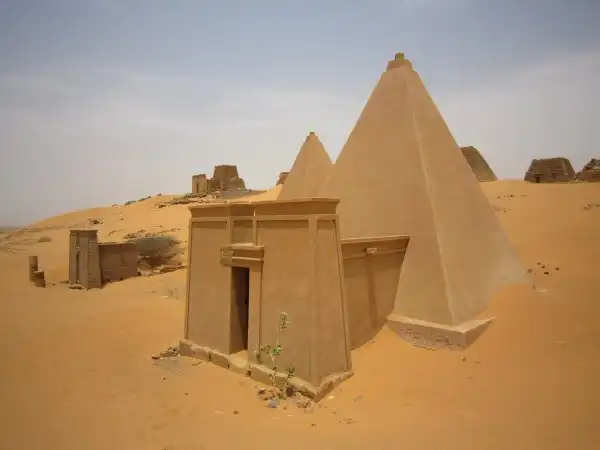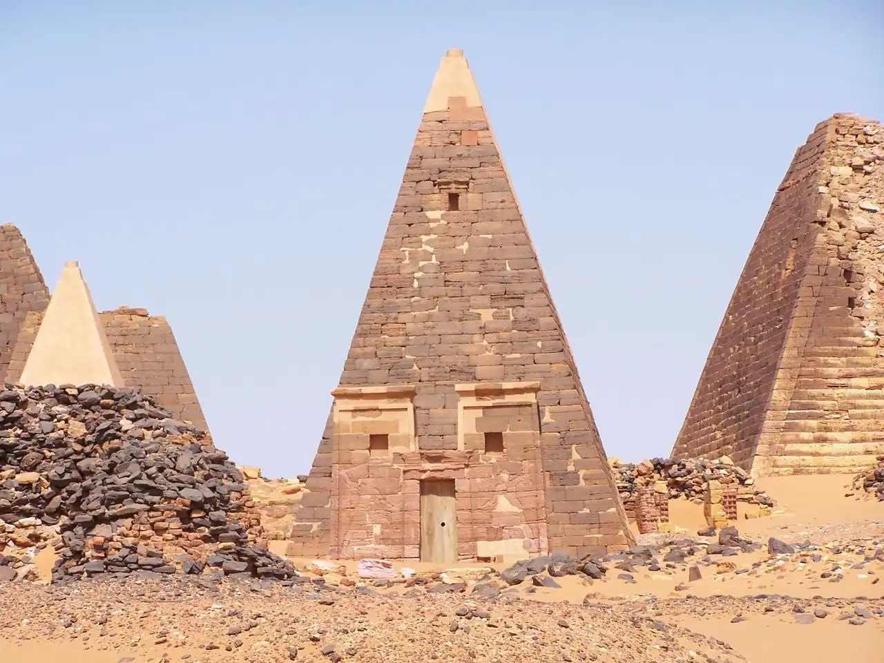 Однако самое большое число пирамид сосредоточилось на территории Центрального Судана, в Мероэ, который сегодня считается одним из крупнейших археологических памятников. Здесь упокоились более сорока цариц и царей, и каждая королевская гробница была укрыта отдельной пирамидой.