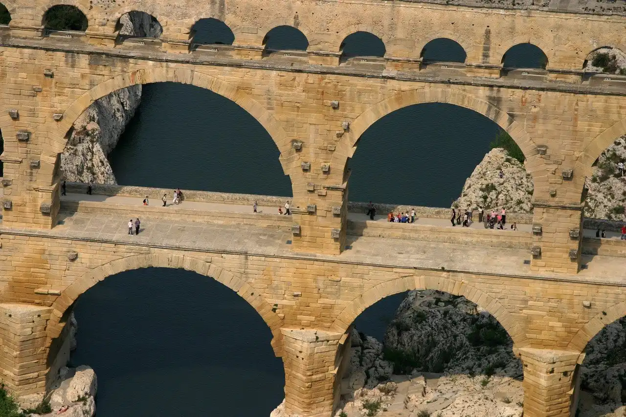 Акведуки строили под углом, так что вода текла в нужное место под действием гравитации. Благодаря буквально наименьшему наклону в среднем всего 25 см на километр, Пон дю Гар обеспечивал Ниму от 30 000 до 40 000 м3 проточной воды в день, снабжая многочисленные термы, фонтаны, водопроводы в богатых домах.