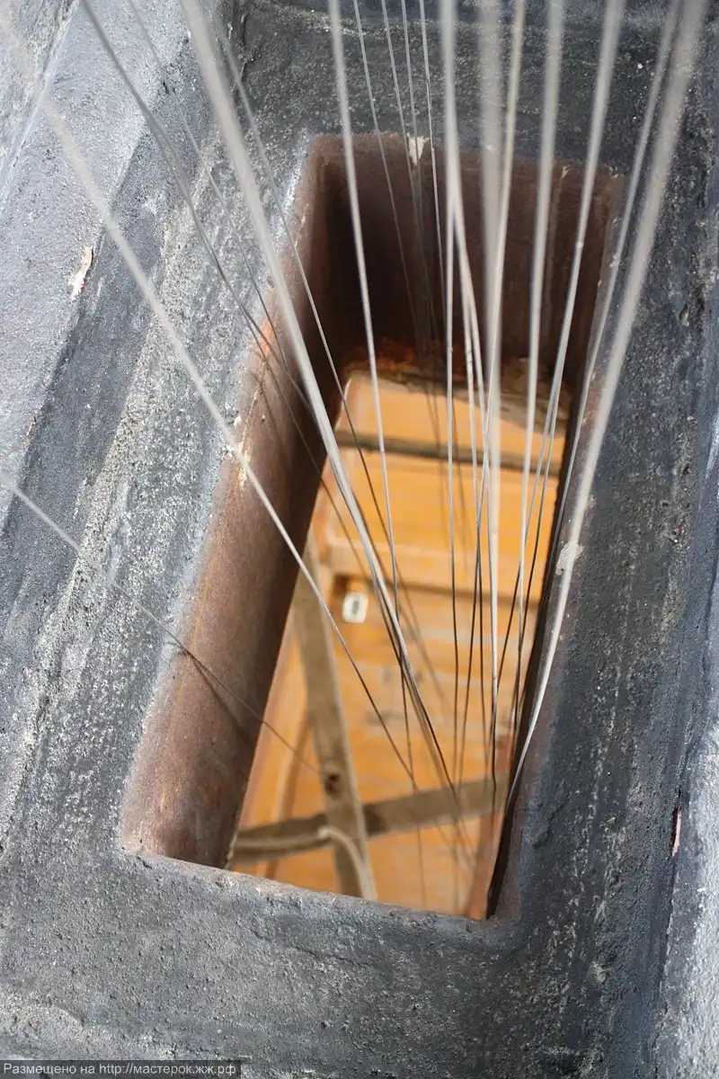 Если поднять голову в часовой комнате. В центре - отверстие, через которое проходят тросы к колокольному механизму. Колокольный механизм связан с часовым механизмом. Когда наступает нужное время, часовой механизм начинает играть колоколами одну из закодированных шипами мелодий. Напоминает старые клёвые квесты аля Мист.