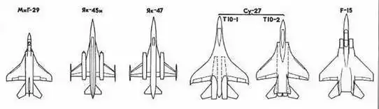 Компоновочные схемы самолетов, представленные на первый объединенный НТС. Схема самолета F-15 приведена для сравнения