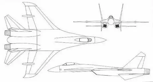 Общий вид первого варианта компоновочной схемы самолета Су-27