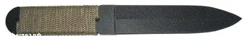 На фото представлен метательный нож Hibben large Thrower («Большой метательный Гиббена»), рукоять которого делается без обмотки, а концевая часть закруглена и в ней имеется круглое отверстие.
