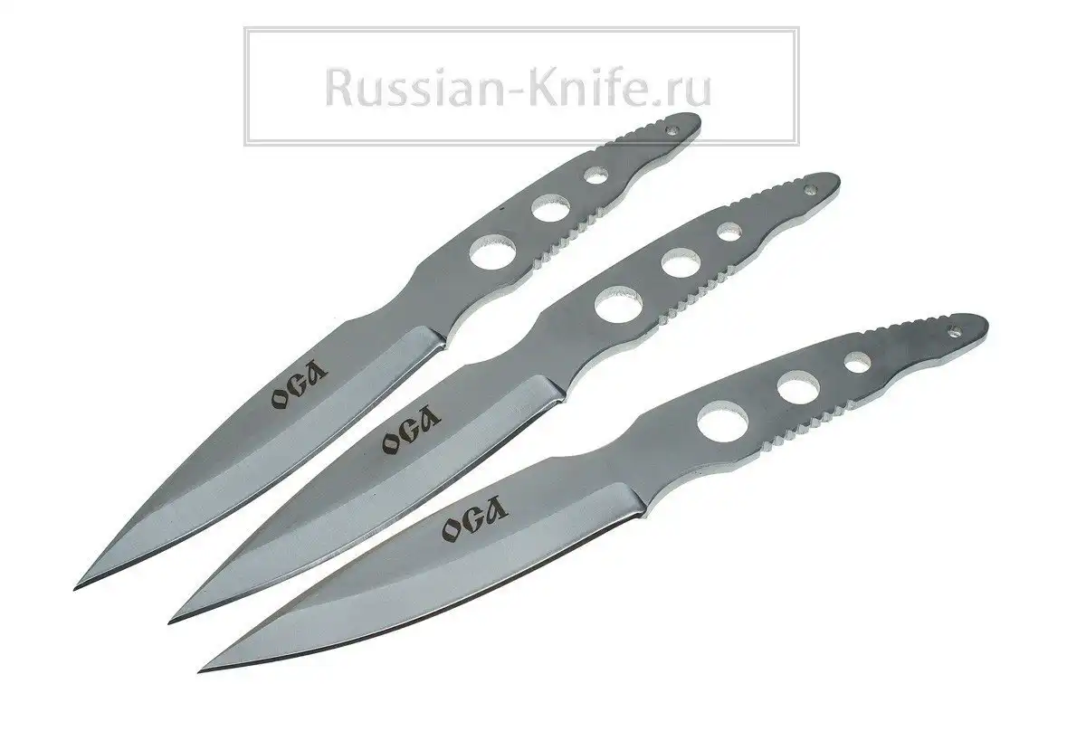 В России метательные ножи практически не производятся, виной тому в основном наши природные условия. Действительно, применять специальный метательный нож в качестве оружия в стране, где тепло только три месяца в году и население большую часть года носит тёплую или очень тёплую одежду, довольно трудно. Попробуйте лёгким метательным ножом пробить обычную российскую телогрейку: довольно затруднительно. Для наших условий реально использование достаточно тяжёлых метательных ножей, а это не совсем рационально, так как лёгких метательных ножей можно иметь несколько штук и их легче разместить на теле. Поэтому вместо специальных ножей у нас применяютя ножи обычного типа, которые при случае можно и метнуть, например, состоящий на вооружении нож разведчика — НР. Это довольно солидная конструкция, имеющая тёмный клинок длиной 160 мм. Рукоятка от клинка отделена развитой гардой. Сама рукоятка имеет покрытие из тёмно-зелёного ударопрочного пластика. Законцовка рукоятки выполнена из металла. В техническом задании на разработку этого ножа особо оговаривалась возможность использования его как метательного оружия. В отличие от зарубежных образцов, эта функция нашего ножа — вспомогательная, поэтому основным критерием является прочность конструкции клинка и рукоятки, которые должны выдерживать большие динамические нагрузки, возникающие при метании, особенно в случае промаха.