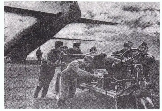СД-57 может перевозиться по воздуху в грузовых кабинах военно-транспортных самолетов Ан-8, Ан-12, вертолетов Ми-4 и десантироваться как посадочным, так и парашютным способом (с использованием специальных платформ ПП-127-3500 и парашютных систем).
