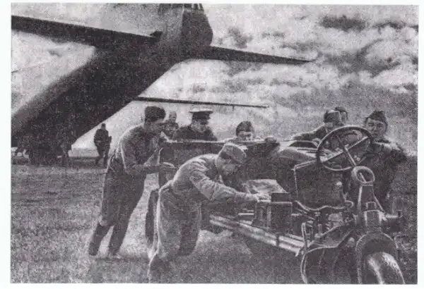 Погрузка орудия в вертолет Ми-4