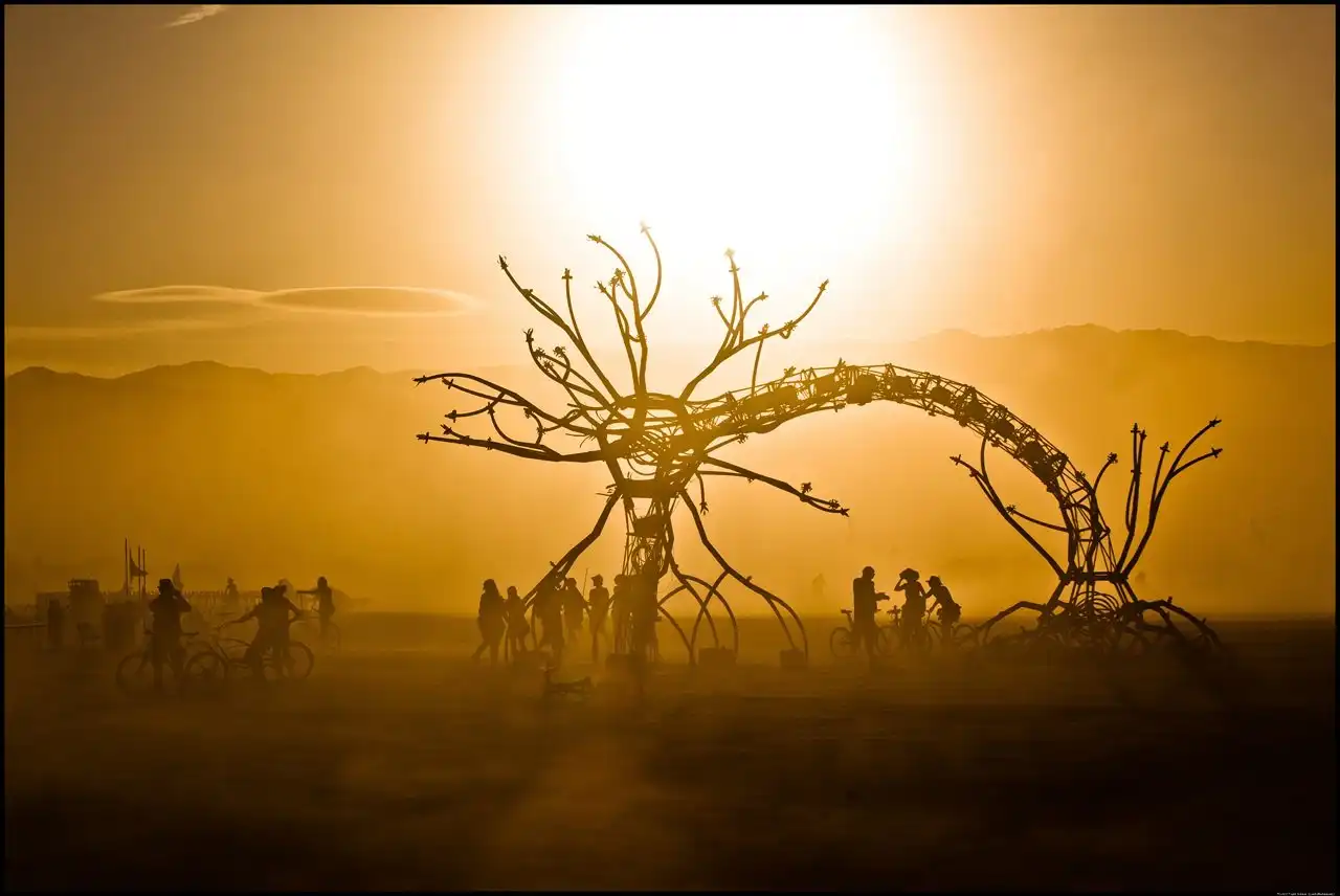 Burning Man это 8 дней безудержного трипа людей в собственные мысли и фантазии, которые находят воплощение в скульптурах возводимых посреди жаркой пустыни и собственных образах. Это другой мир.