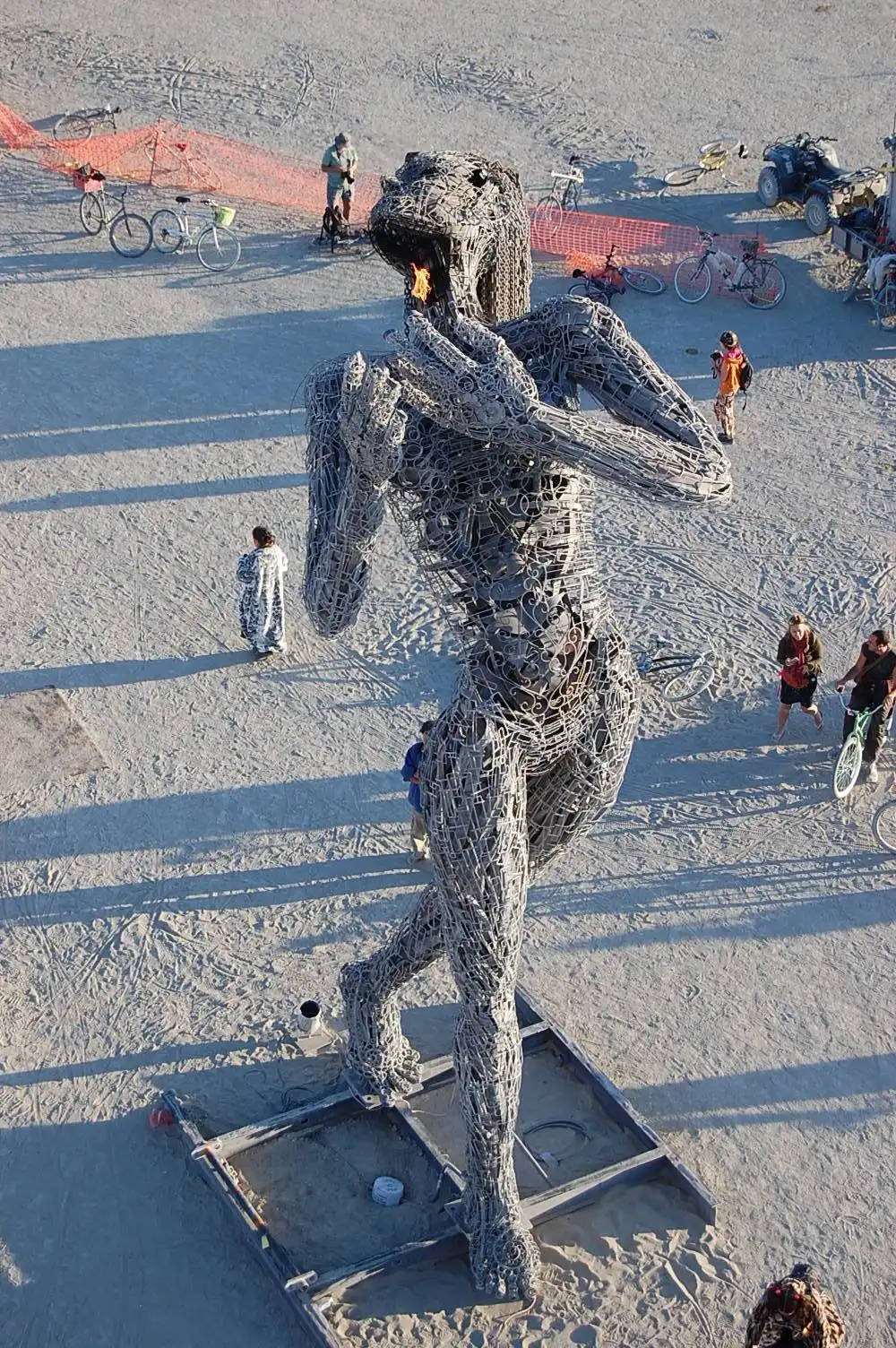 Первое сожжение небольшого деревянного человека было в 1986 году, тогда ещё на одном из пляжей Сан-Франциско, небольшой группой друзей. Впоследствии круг участников расширился и переместился на нынешнее место в пустыню в штате Невада. В 2008 году в фестивале участвовали без малого 50 тысяч человек.