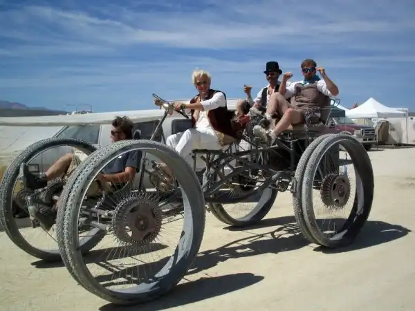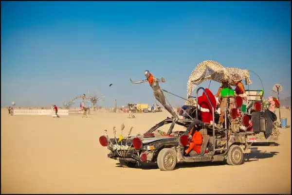 Участники фестиваля делятся на две категории: те кто придумывает себе образ, например, облачаясь в костюм человека живущего в мире пережившем ядерную войну и зрители, то есть те у кого не хватило смелости придумать себе образ. Практически все участники приезжают на машинах, но при одном, строгом условии – машина не должна напоминать машину. Делайте с ней что хотите, от космического корабля до огнедышащего монстра, но она не должна напоминать современный автомобиль. За соблюдением правил следит специальная комиссия, которая может посчитать ваше транспортное средство недостаточно креативным.