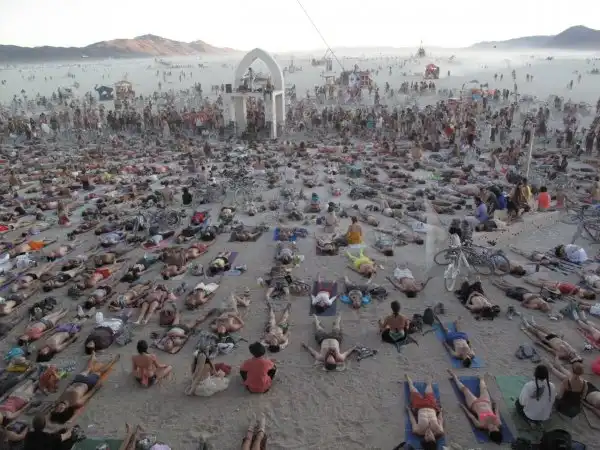 Нудизм приветствуется. Например, одно из самых заметных событий фестиваля — Critical Tits Parade, когда несколько сотен участниц всех возрастов с разрисованными бюстами едут на велосипедах вокруг статуи Человека в день ее сожжения.