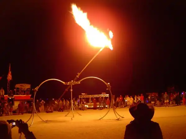 Сами организаторы определяют событие как эксперимент по созданию сообщества радикального самовыражения, при этом полностью полагающегося только на себя (англ. radical self-expression, and radical self-reliance). На неделю в пустыне устанавливаются произведения современного искусства, часто фантастических форм. Некоторые из них сжигаются создателями до окончания «Burning Man». Там ездят сотни «мутированных» машин самого невероятного облика, многие участники ходят в костюмах персонажей искусства, зверей, предметов, и так далее. Приехавшие в пустыню артисты дают выступления, популярны различные танцы. Диджеи круглосуточно крутят музыку на нескольких танцполах.