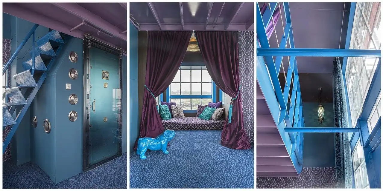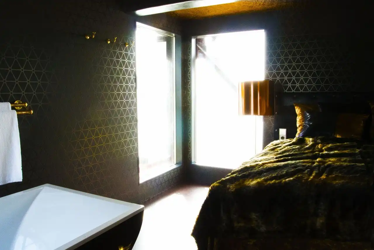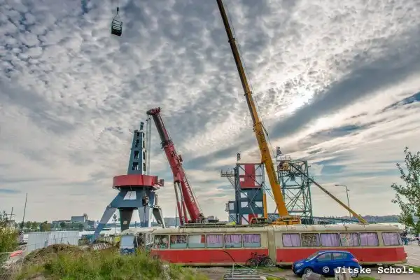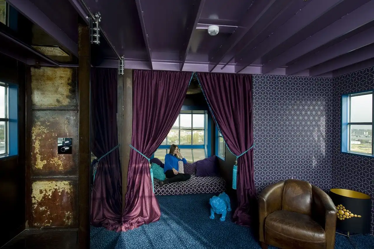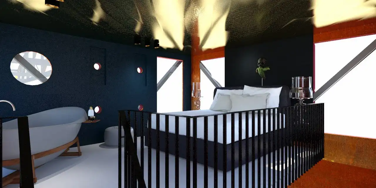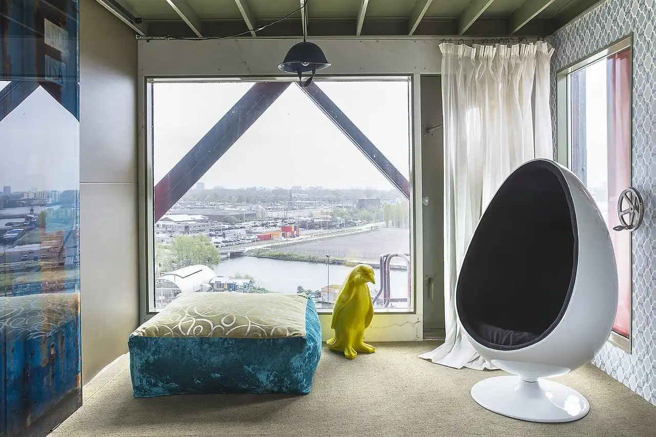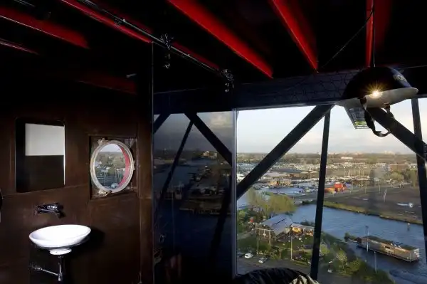 Благодаря усилиям дизайнеров старый подъемный кран превратился в пятизвездочную гостиницу с тематическими комнатами. В Faralda NDSM Crane Hotel есть 3 номера площадью 36 кв. м. Из окон апартаментов открывается захватывающий вид на реку и городской порт.