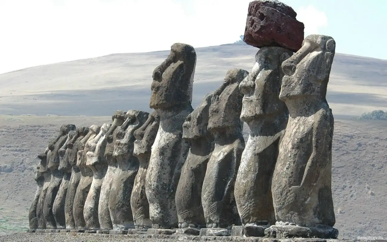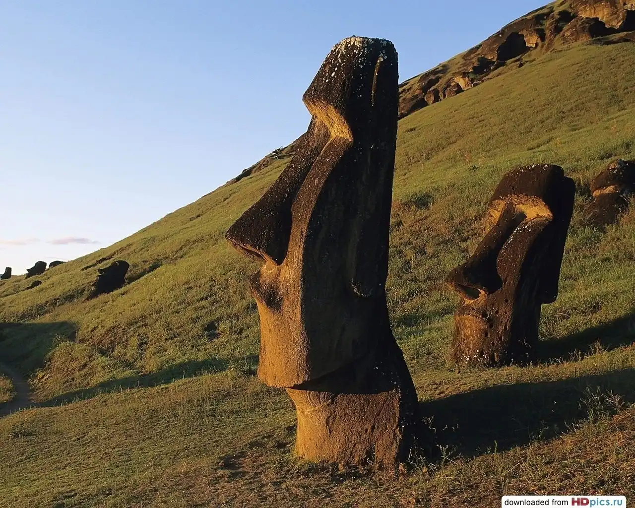 С этих каменных статуй началась слава острова. Было совершенно непонятно, как они могли появиться на затерянном в океане островке со скудной растительностью и «диким» населением. Кто вытесал их, приволок на берег, водрузил на специально сделанные постаменты и увенчал увесистыми головными уборами?