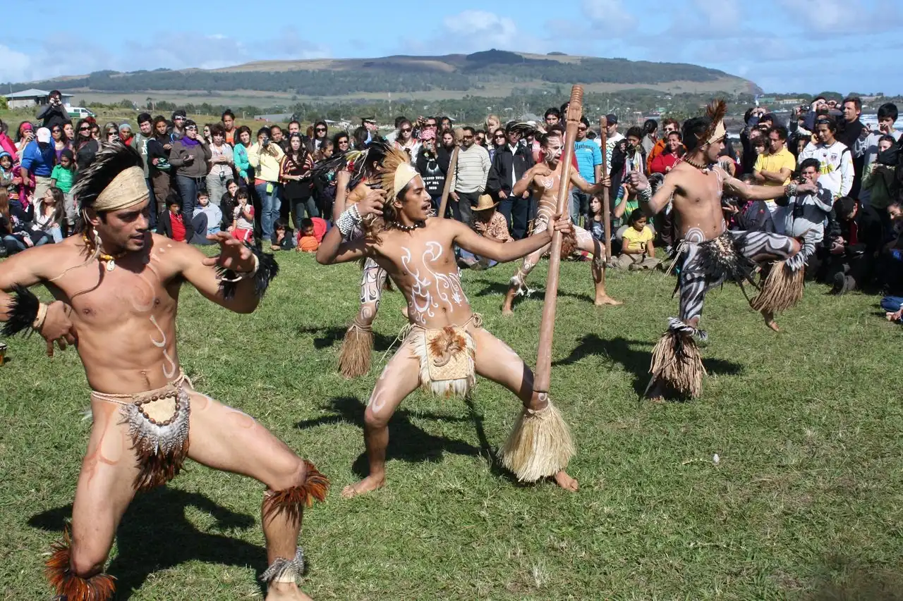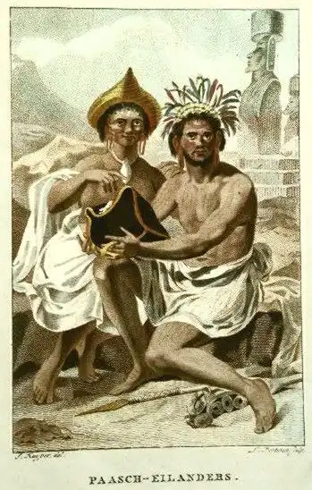 Сейчас на острове живет около трех тысяч человек. Из них только 150 человек — чистокровные рапануйцы, остальные же — чилийцы и метисы. Хотя опять-таки не совсем понятно, кого именно можно считать чистокровными. Ведь еще первые высадившиеся на острове европейцы с удивлением обнаружили, что жители Рапануи — полинезийское название острова — этнически неоднородны. Знакомый же нам адмирал Роггевен писал, что на открытой им земле жили белые, смуглые, коричневые и даже красноватого оттенка люди. Их язык был полинезийским, относящимся к диалекту, изолированному примерно с 400 г. н. э., и характерному для Маркизских и Гавайских островов.
