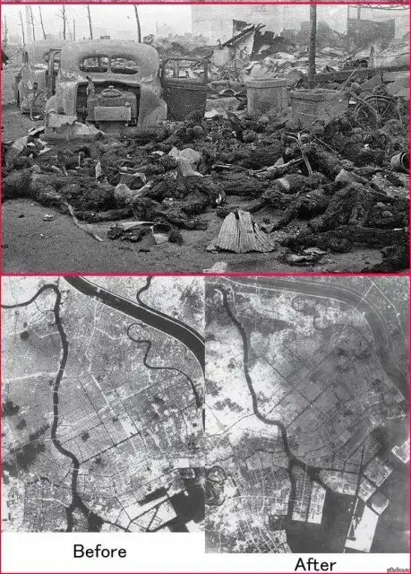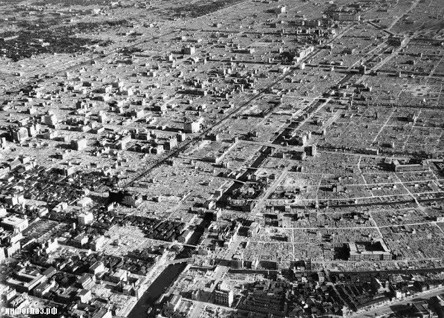 Всего тогда в 1945 выгорел 41 квадратный километр площади города, который населяло около 10 миллионов человек, было разрушено 40% всего жилого фонда (330 тысяч домов).