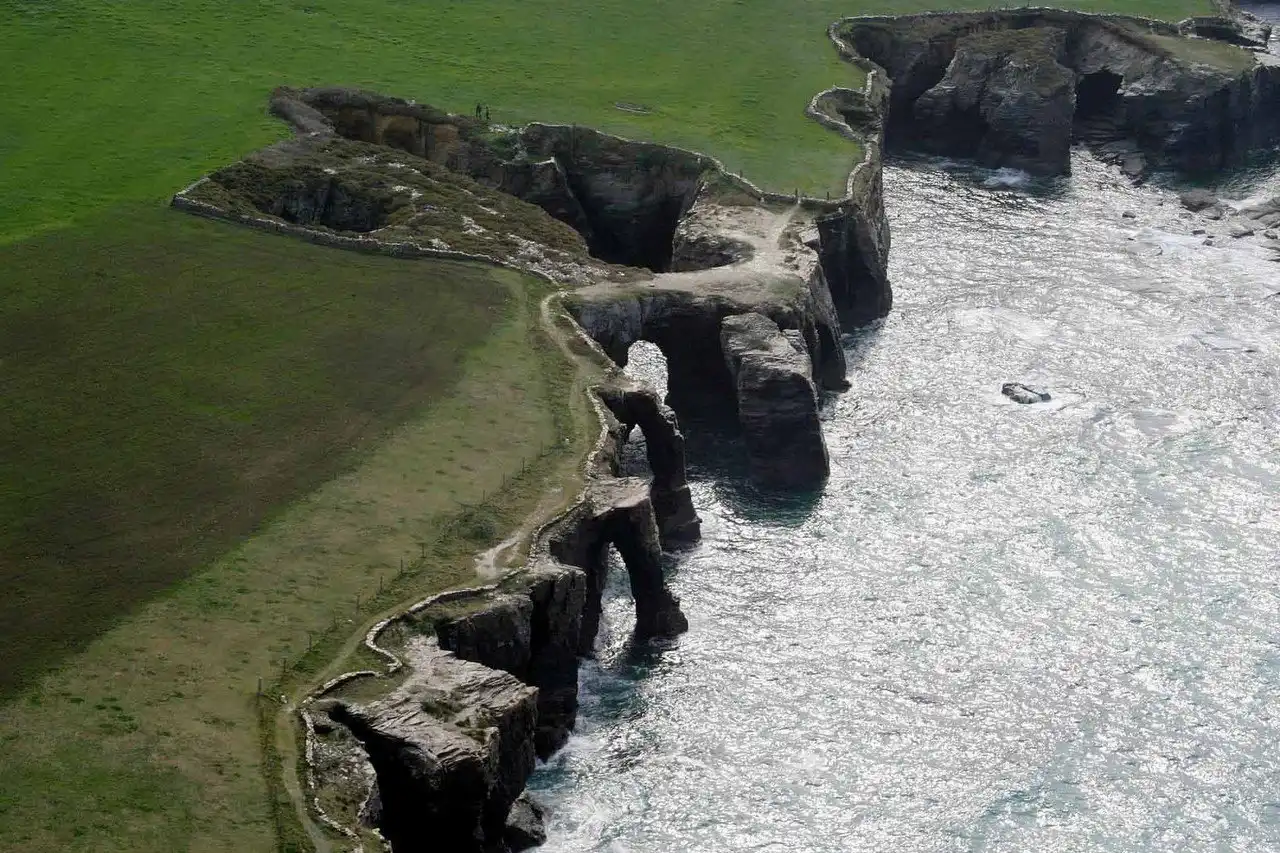 Великолепный ансамбль скальных изваяний, анфилад арок, туннелей, колонн и пещер можно наблюдать и сверху, с берега. Над самым обрывом проходит обзорная тропа, огороженная для безопасности туристов невысоким парапетом. Этот вариант подойдет на тот случай, если кому-либо не посчастливилось пропустить отлив или же просто попасть на Пляж Кафедральных Соборов в шторм.
