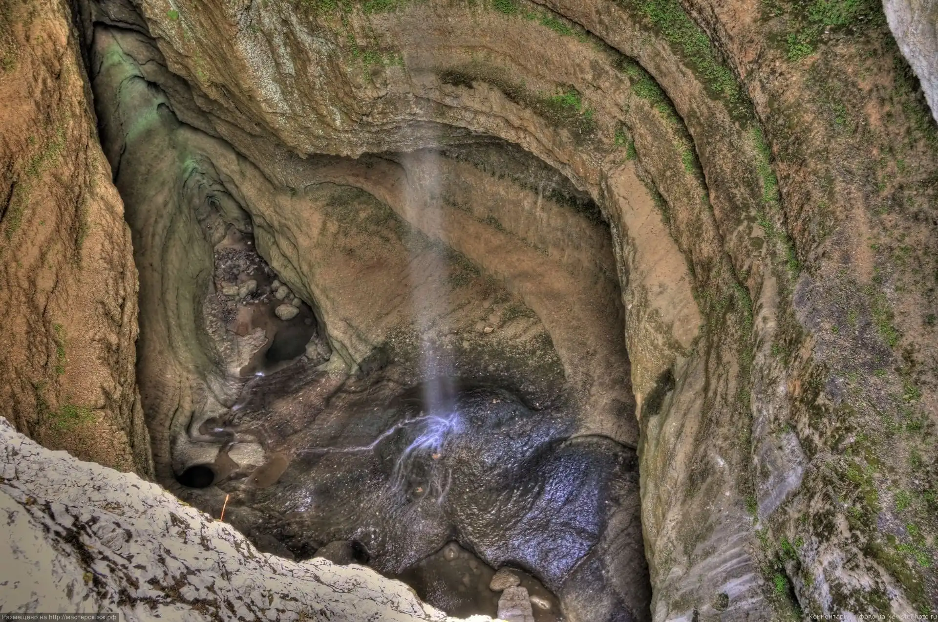 Между тем искать водопад не зная его точного месторасположения довольно опасно. Дело в том, что издалека пропасть, в которую срывается водопад, просто не видно, поэтому для туристов есть немалый риск сорваться с обрыва прямо в Глотку Баатары! Единственным, что обозначает место пропасти и водопада, является указательный столб. Подходить ближе очень опасно, так как края пропасти очень скользкие и сорваться вниз значит наверняка погибнуть…
