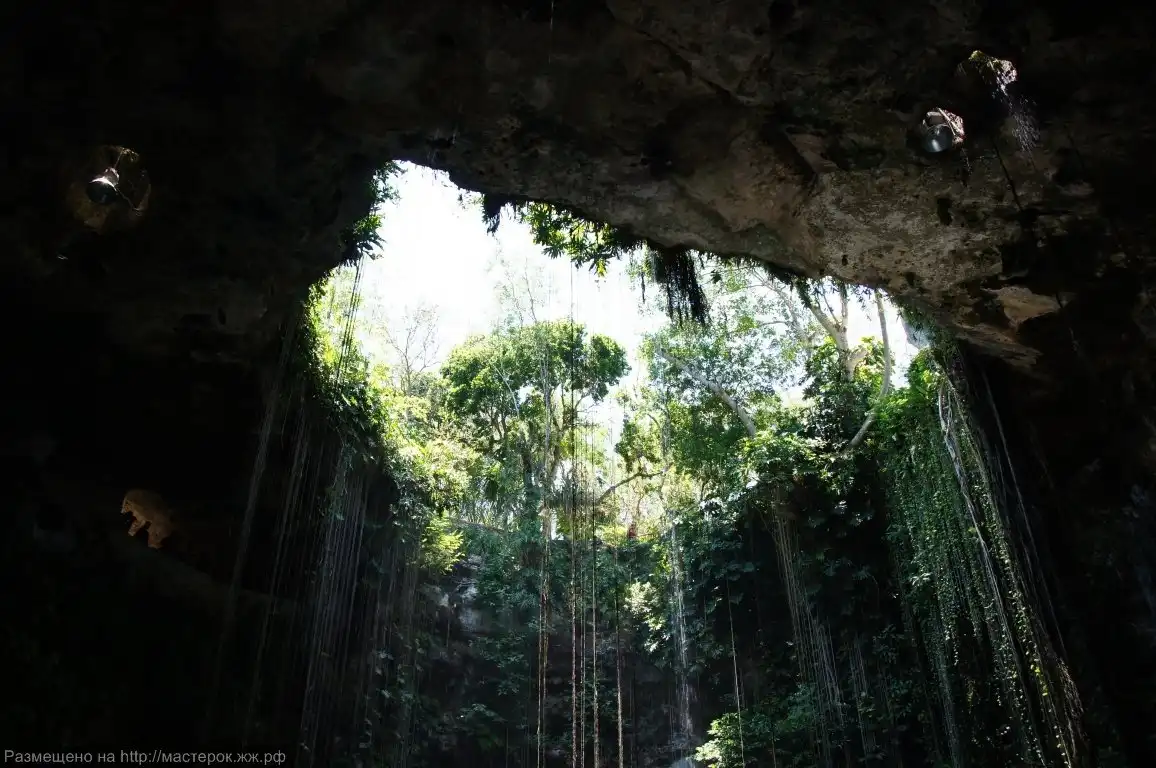 Иногда свод пещеры обваливается - так получаются Cenote.