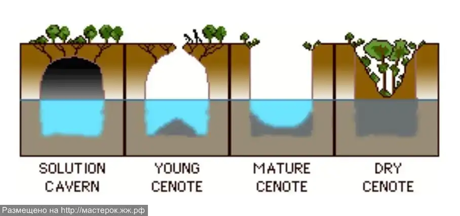 Сеноты (исп. «cenote», из языка юкатанских майя «dzonot») - особые карстовые образования - озера, колодцы и целые пещерные комплексы с подземными реками и, временами, доступом морской воды. Полуостров Юкатан целиком сложен из известняковых пород.