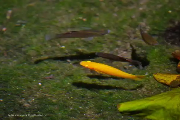 Если присмотреться то в воде хорошо видно черные точки. Это рыбки - обитатели синоте.