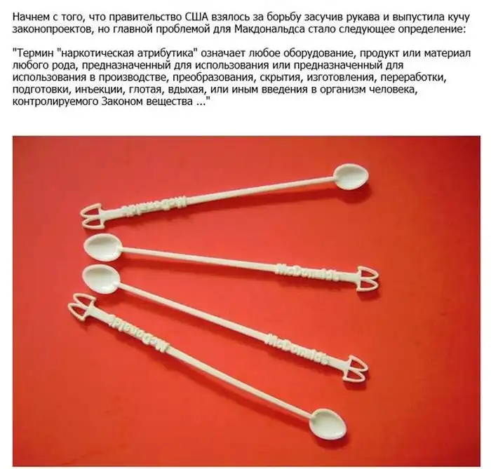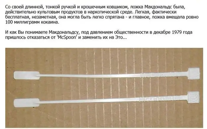 Интересная история обычной ложечки из культового фастфуда McDonald’s, которая из-за своей формы была причислена правоохранительными органами США к "наркотической атрибутике".