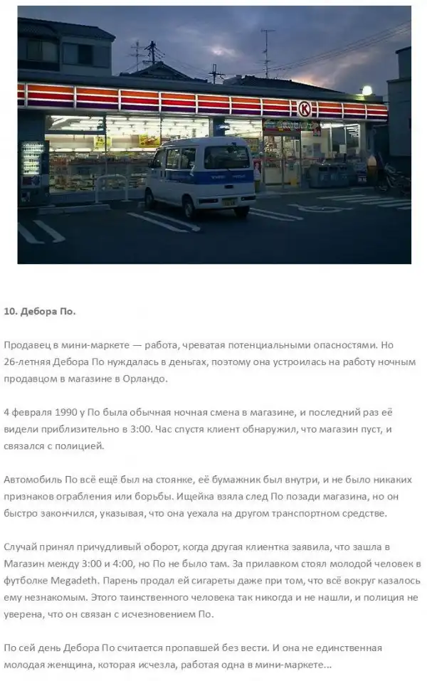 Несколько действительно пугающих историй о людях, которые, как обычно, утром ушли на работу, но так и не вернулись домой.