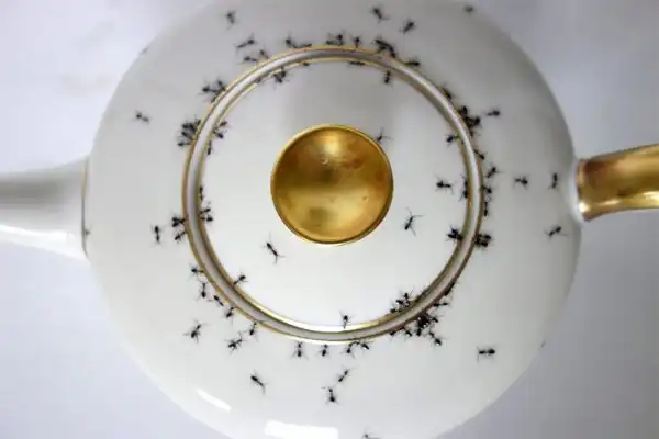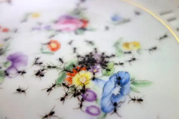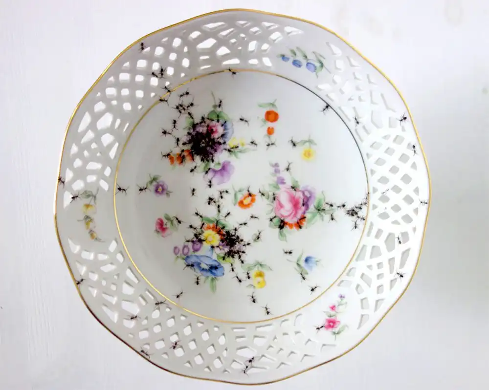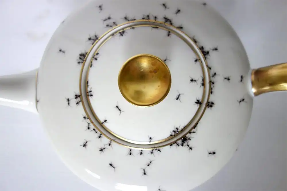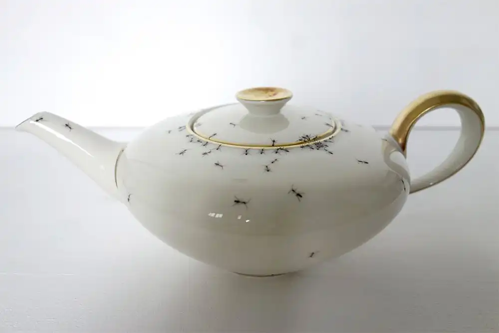 Увидев эту посуду, вы точно захотите закричать, схватить свернутую в рулон газету или спрей против насекомых. Но не пугайтесь так. Муравьи, захватившие тарелки, чайники и вазы, - это искусный рисунок, который сделала Evelyn Bracklow.