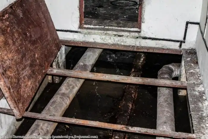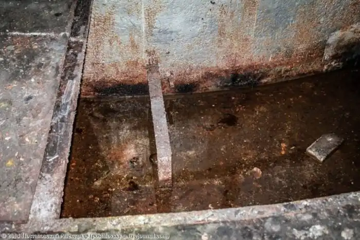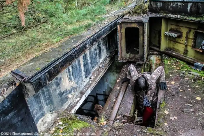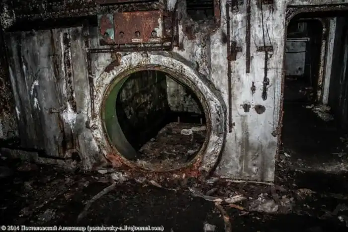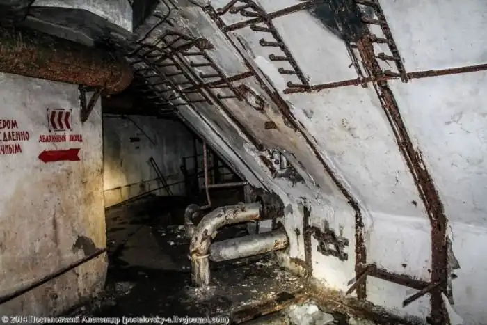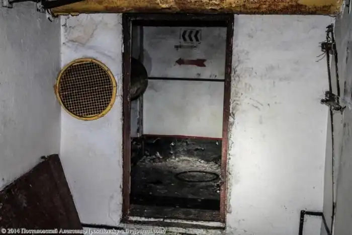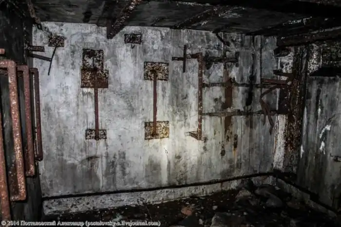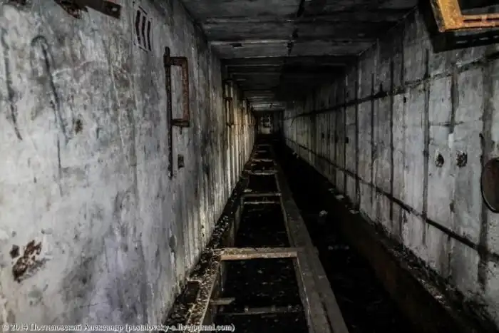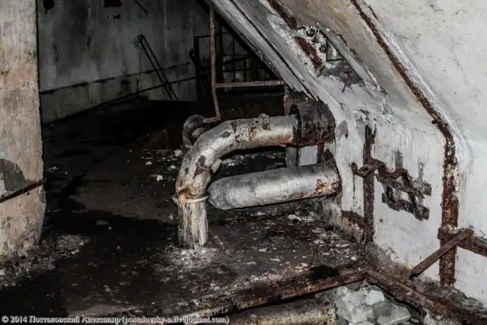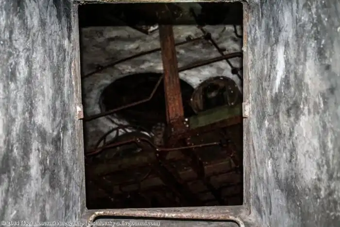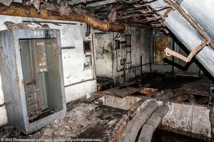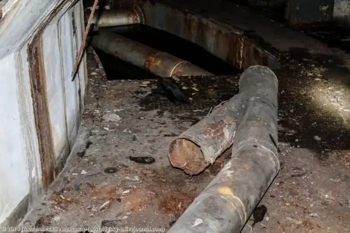 Конусовидная часть стены слева — это сама шахта, вернее — тот самый колодец, где должна была находиться ракета. Чуть выше труб на фото можно разглядеть вход в \«колодец\».