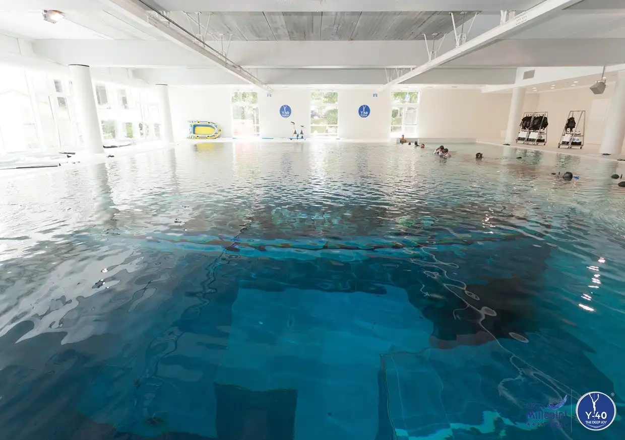 А на крыше имеются шезлонги, в которых пловцы могут принимать солнечные ванны и отдыхать после глубоководных погружений. В открытии этого бассейна участвовали известные фигуры в мире водных видов спорта. В их числе были итальянский фридайвер Умберто Пелизари и Энцо Майорка, «отец» итальянского фридайвинга. Бассейн открыт круглый год, мероприятия, проводимые там, включают в себя гидротерапию, аква-фитнесс, специальные программы для беременных женщин, фридайвинг, подводное плавание. На глубине 10 м смоделировано несколько подводных пещер.