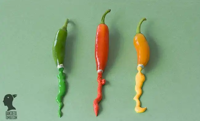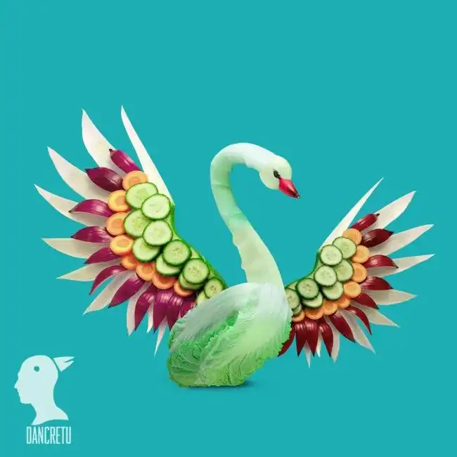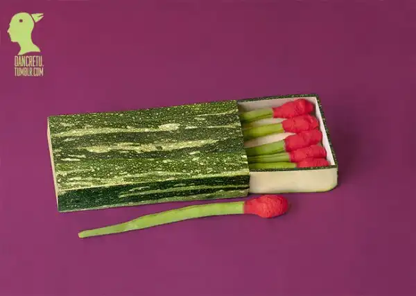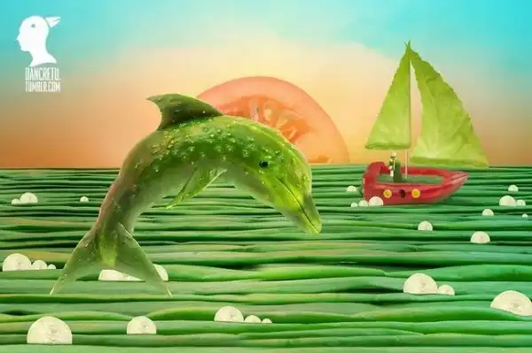 Художник Дэн Крету не может просто поедать свою еду, он слишком творческая личность. Он играет с фактурой и цветами различных пищевых продуктов, собирая их в забавные фигурки.