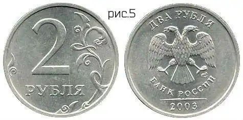 Монета 2003 года достоинством 2 рубля, которая чеканилась только СПМД, была выпущена ограниченным тиражом, именно из-за этого данные редкие монеты оцениваются значительно выше номинала (рис.5).