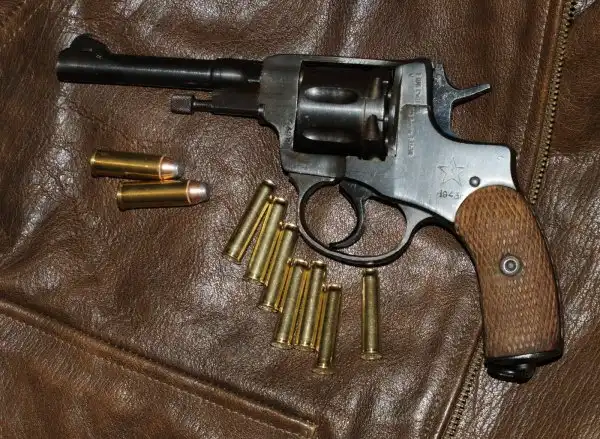 В 1941 году выпуск наганов в Туле был прекращен и их производство переведено на Ижмаш, где продолжалось до 1945 года. После окончания Великой Отечественной револьверы были сняты с вооружения армии. Часть из них была отправлена в переплавку, другие, в лучшем состоянии, после капитального ремонта и консервации складированы, третьи переданы в МВД. Экземпляры, попавшие в МВД, служили до середины 50–х годов. Вспомним такие фильмы как «Место встречи изменить нельзя» или «Ликвидация». В них как положительные герои, так и криминальный мир, были вооружены наганами, последние, правда, предпочитали револьверы не только за надежность и кучность стрельбы, но и за то, что гильза при выстреле остается в барабане, а не на месте преступления. Как правило, вохровские экземпляры были довольно потрепанными, для них выпускался специальный ослабленный патрон — такой патрон не повреждал изношенное оружие и не убивал нарушителя режима, а лишь ранил его. Те же экземпляры, которые после капитального ремонта попали на склад (все из них имеют ремонтное клеймо в виде разделенного пополам прямоугольника) в оружейной смазке, заводском воронении и прекрасном состоянии сохранялись на складах вплоть до последних лет. Затем было решено переделать часть
