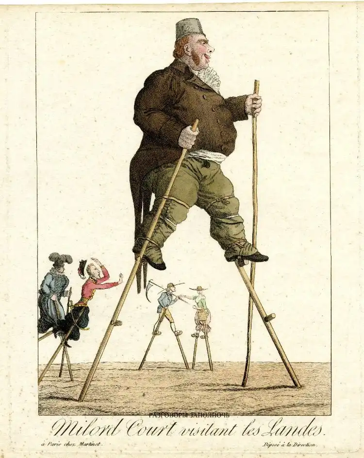 В XVIII веке французы использовали ходули на войне во время разведывательных операций, поскольку Юго-Западная Франция отличалась изобилием сыпучих песков, по которым передвигаться можно было только таким способом. Это позволяло устанавливать телеграфное сообщение без использования лестниц, переходить реки в брод, не оставляя при этом после себя следов. Офицерам очень удобно было обозревать местность, находясь на ходулях.