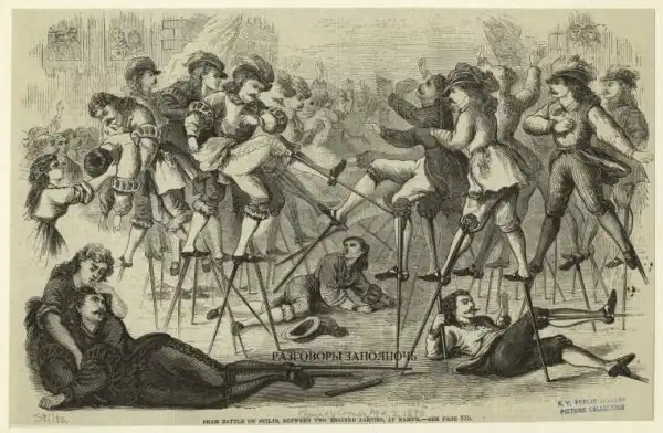 Также во Франции и Бельгии были придуманы соревнования на ходулях. Суть соревнования заключалась в том, чтобы сбить своей ходулей соперника!